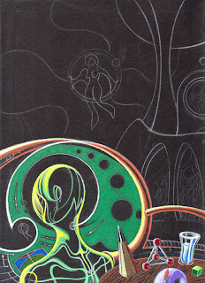 Here are two paintings done close together. The top one is very flowery and female in form but it is also a landscape if you turn it right (also female). I seem to do this a lot to my paintings(turning them). I was originally intending to do another more exact bilateral symmetry work like the one below, but as I really had no specific idea as to what I was going to paint, they just seem to take a life unto their own.
